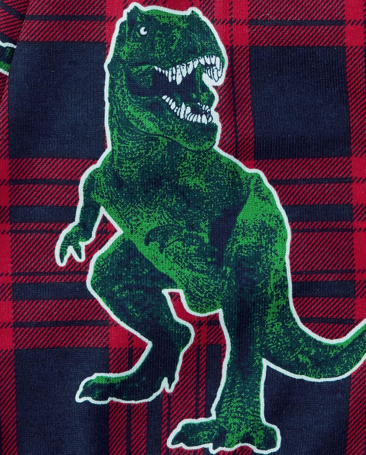 • PAJAMA PANTS — Features pull-on elasticized waistband, banded leg cuffs and allover plaid and dino print