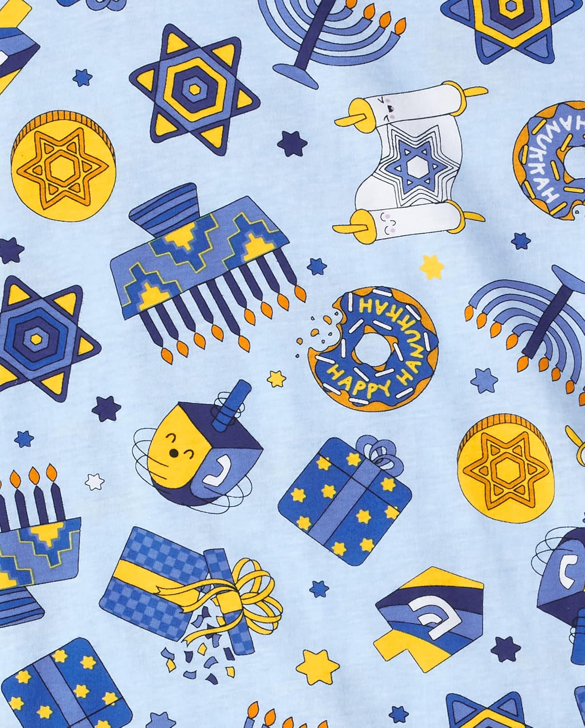• PAJAMA PANTS — Features pull-on elasticized waistband, banded leg cuffs and allover menorah print