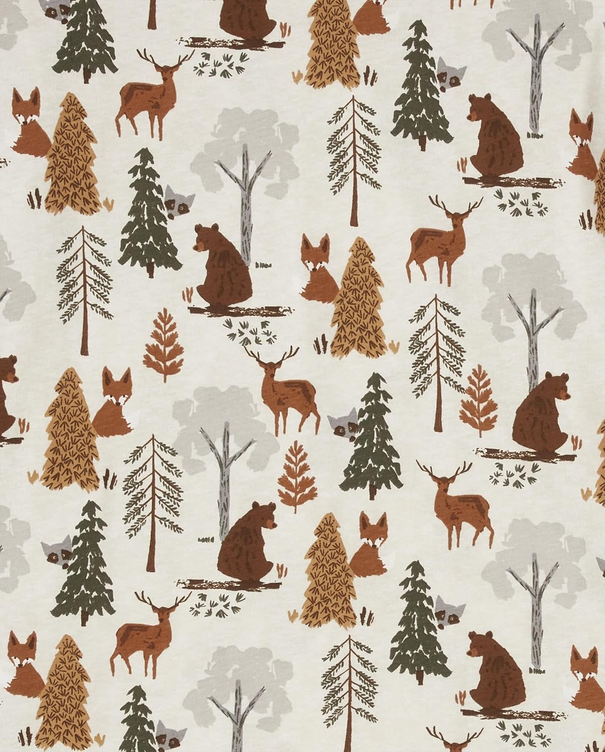 - PAJAMA TOP — Features long sleeves, rib-knit crew neck and sleeve cuffs and allover forest and animal print