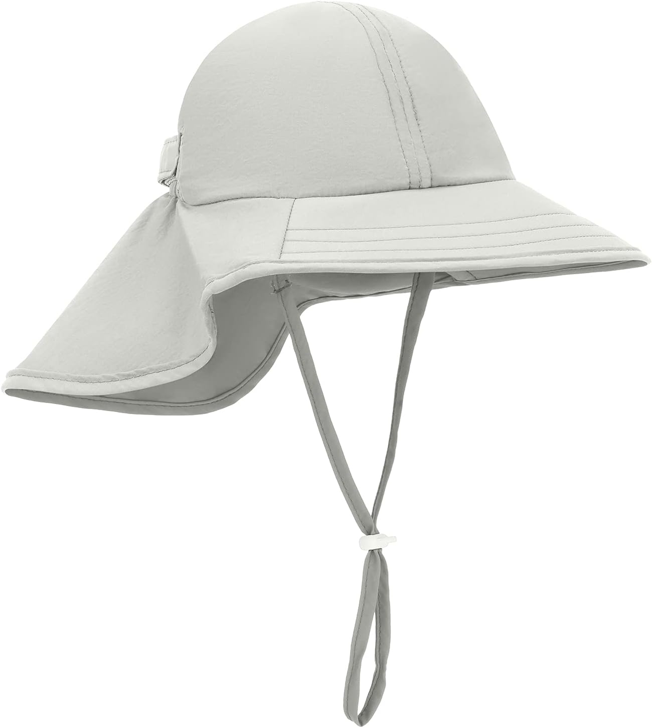 - ADJUSTABLE hat - This is the baby sunhat that always fits! Perfect for all ages and stages! It's a newborn sun hat, baby sun hat and great for your toddler boy or toddler girl, and big kids too! Your adjustable baby hat looks adorable with baby sunglasses too! The neck flap - neck veil provides another added layer of protection from the sun! You wouldn’t head to the beach without your swimsuit, don't leave home without your beach hat either!