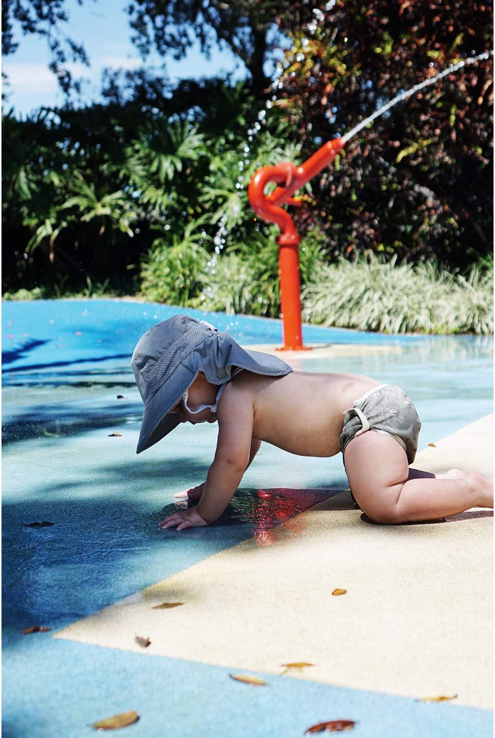 - SAFETY RELEASE CHIN STRAP - Safety first!!! Emergency release will help prevent a dangerous choking hazard. If you have a newborn boy or newborn girl and love spending time outdoors this sun hat is right for you! A quality swim hat is an essential piece of baby swimwear! Add it to the list of baby gear you can't leave home without! The cap in front protects the eyes and face and the back protects the neck!