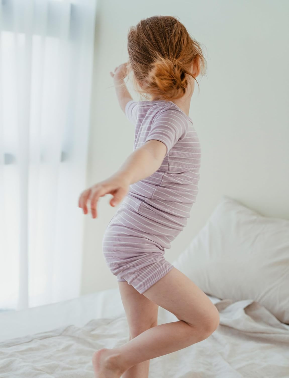 - COMFORTABLE FABRIC - This stylish Stripe Pattern pj set is a perfect blend of multi-functional style and comfort. Viscose is like a smooth material similar to silk breathable, similar to cotton in this regard. Enough to help protect child's delicate skin. That's why pajama set is Easy to dye, light weight, and natural material. It will give perfect fit.