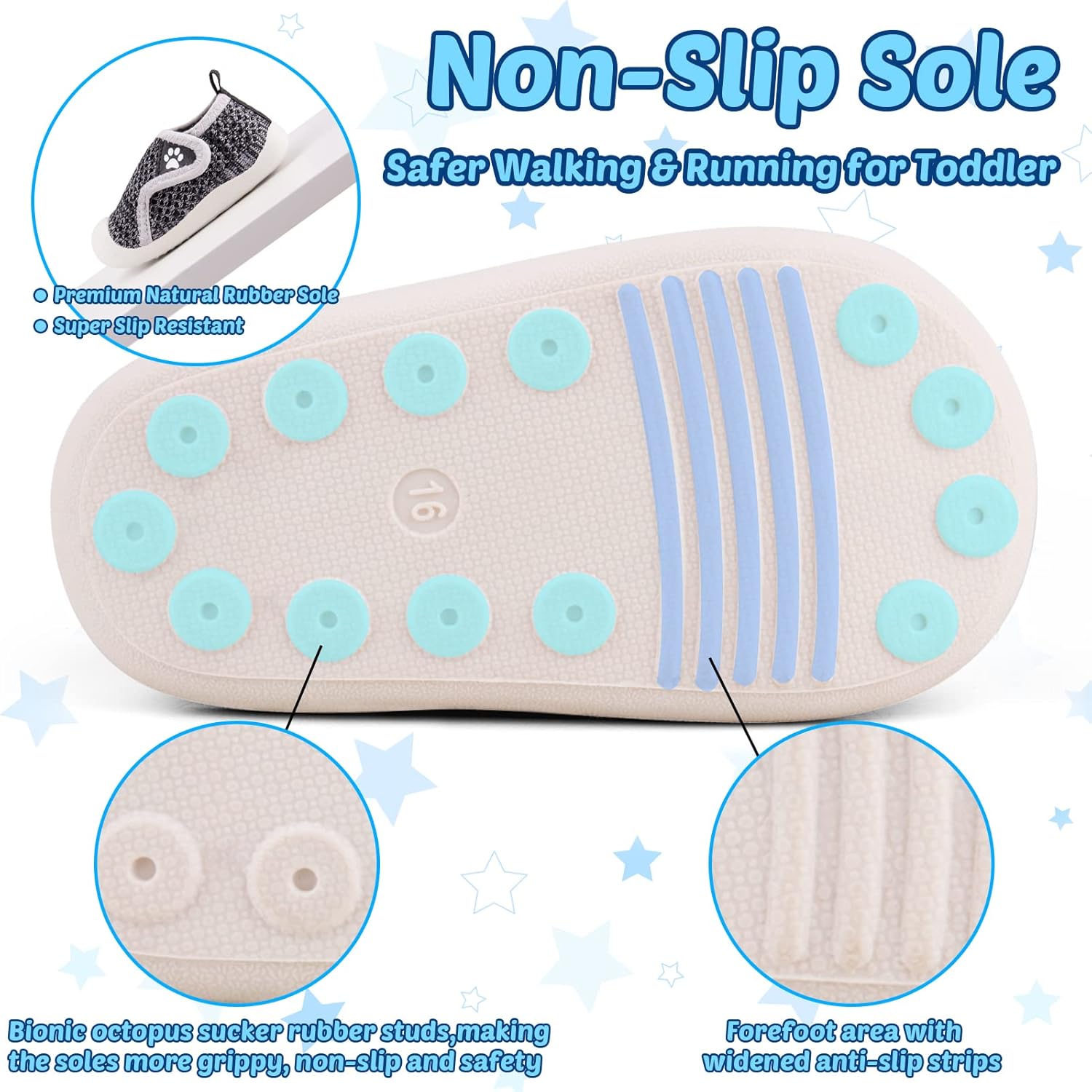 - Non-slip Safer Soles: Toddler walking shoes are soft and lightweight, makes toddler walking feel natural. The non-slip and abrasion-resistant rubber sole is made ofhigh quality natural rubber, making the sole more grippy, slip-resistant and safty. Non slip sole prevents your babies from slipping, helps baby girl boy learn balance as their toes grip the ground, toddlers will enjoy crawling, walking, running happily.