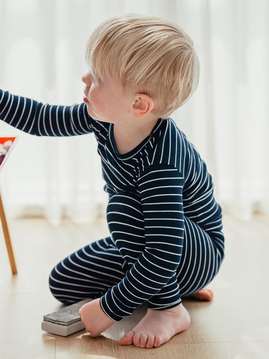 AVAUMA Stripe Pattern Baby Boys Girls Pajama Set Kids Toddler Snug fit Ribbed Sleepwear pjs for Daily Life Style