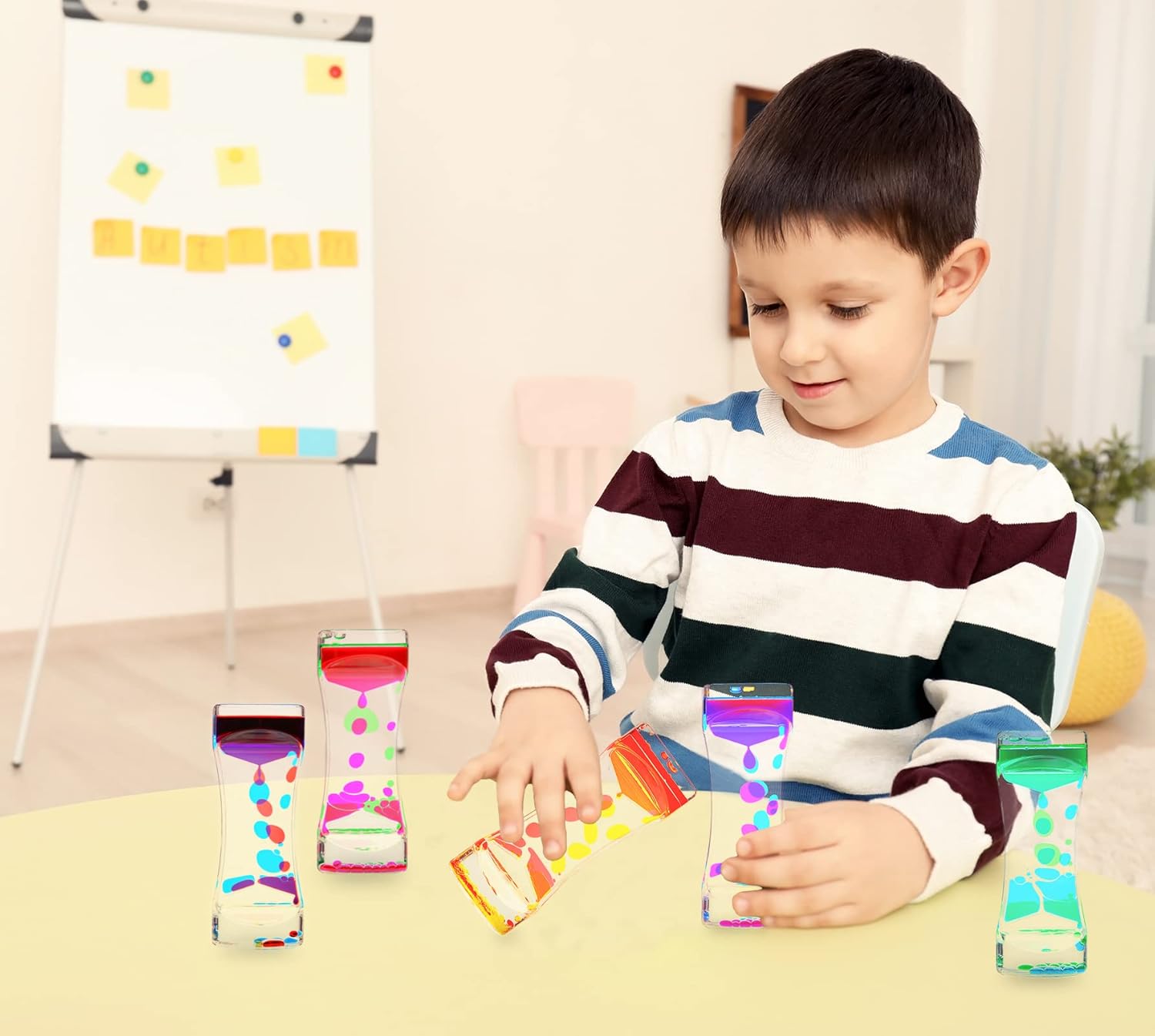 - WONDERFUL SENSORY TOYS: Our liquid bubblers work by letting gravity guide the colored droplets from top to bottom at a slow and steady speed,shake the liquid timer with a little force,and it will have different sensory effects like a sensory bottle,let your kids improve their visual awareness and creative thinking with an awesome liquid motion bubbler that will keep kids entertained for hours at a time!