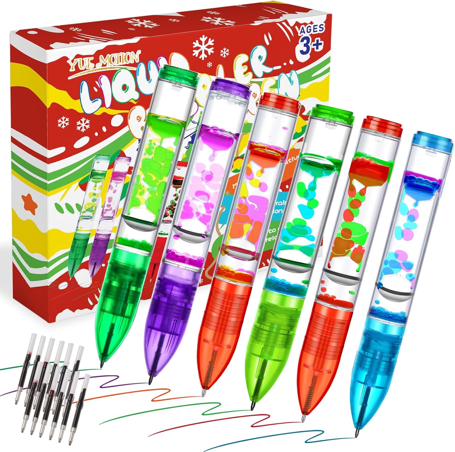 YUE MOTION Liquid Motion Bubbler Pens - Colorful Liquid Ballpoint Pen for Back to School Gift,Stocking Stuffers, Easter Basket Stuffers -Fidget Toy Pen for Stress Relief and Anxiety(6 Pack)