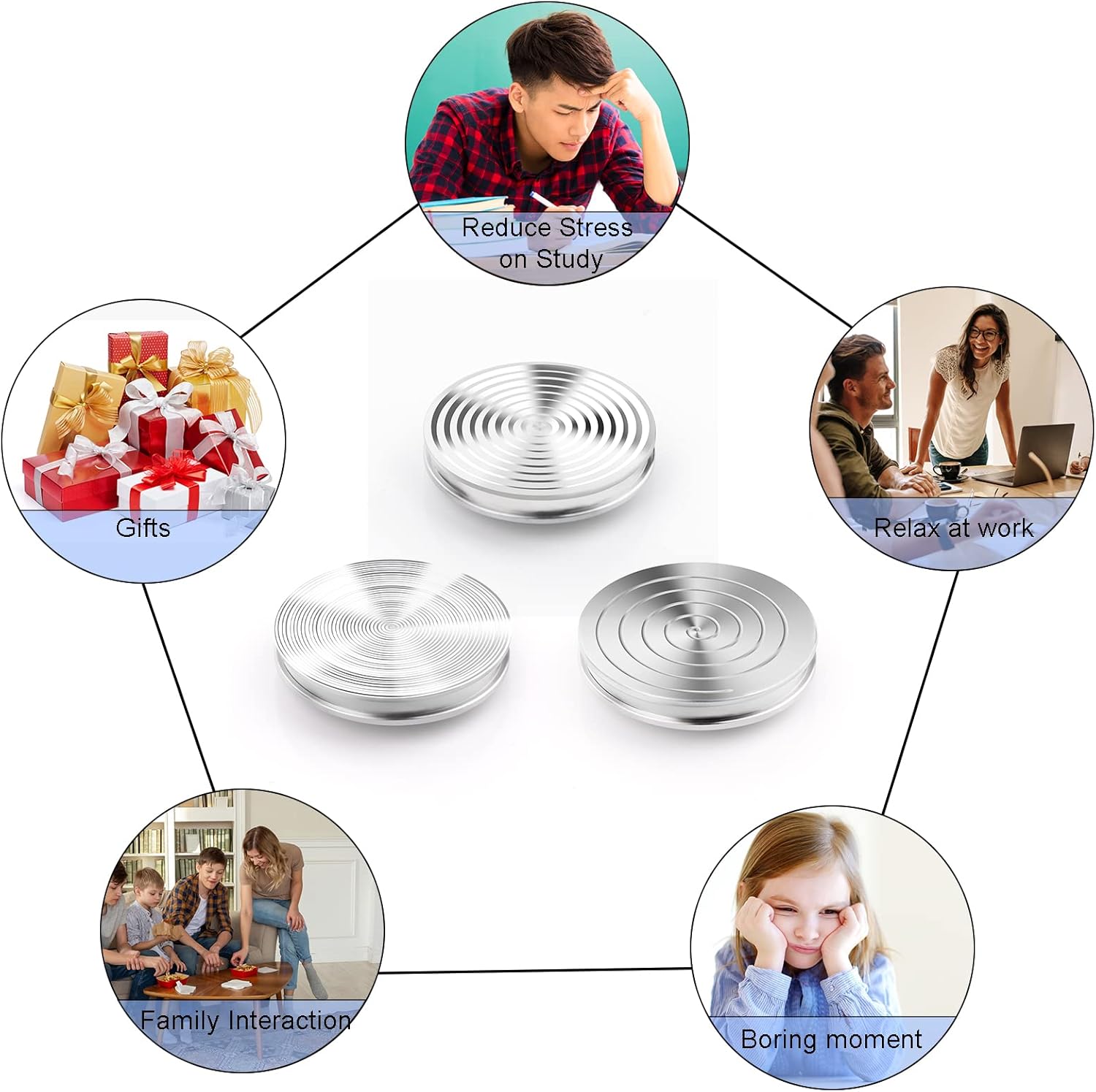 TOMAZON Kinetic Desk Spinning Toy, Stainless Steel Rotating Motion Coin, Optical Illusion Spinning Top for Office Anxiety Stress Relief, Portable ADHD Little Fidget Toys Gift for Adults & Kids(3 Pack)