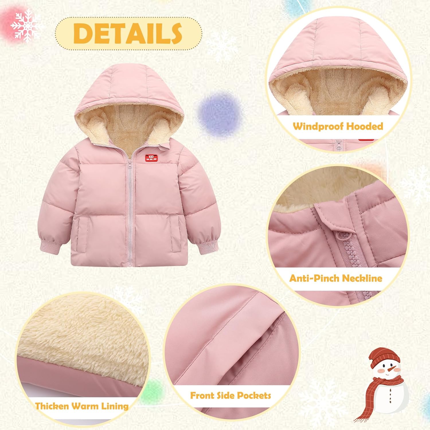 - Multifunctional Features Designs: Our baby winter coats include windproof hoody, anti-pinch neckline, front pockets for storing items and easy pull zipper etc.
