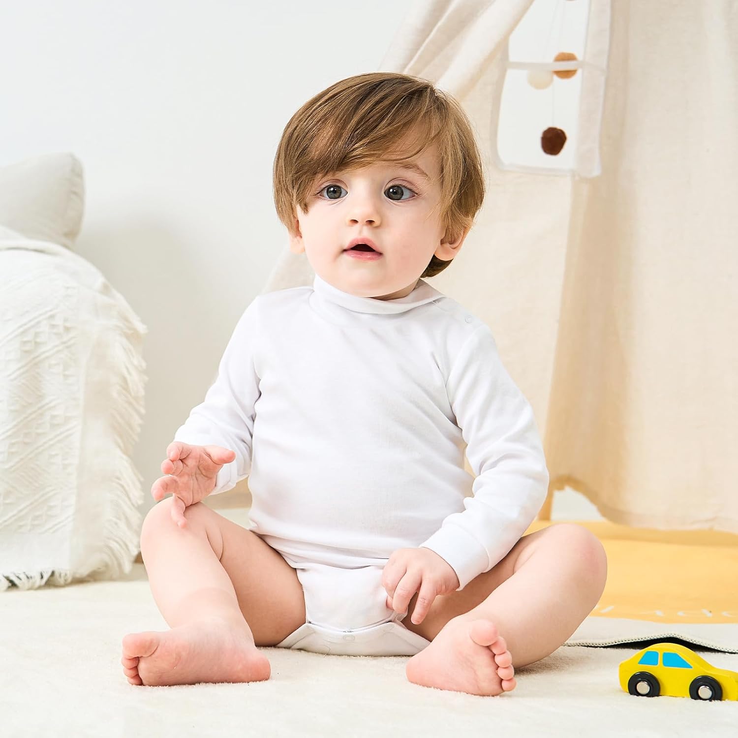 - THOUGHTFUL DESIGNS - This cute bodysuit features turtle neck and long sleeves to keep baby's neck and arms covered and warm when they are ready to adventure outside