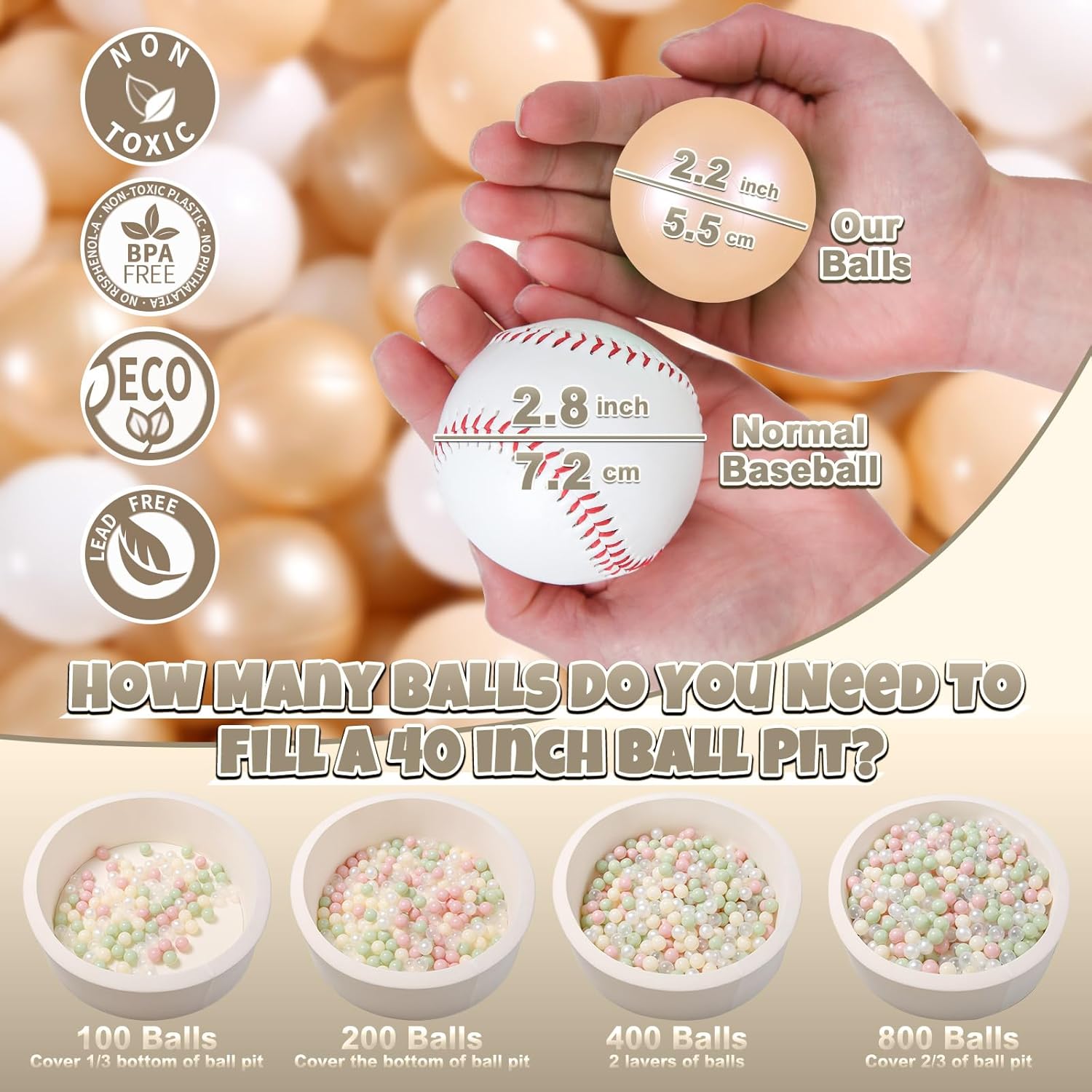 GOGOSO Ball Pit Balls for Toddlers, Brown Plastics Balls for Ball Pool Birhtday Party Girls Kids with Storage Bag, 2.17inches