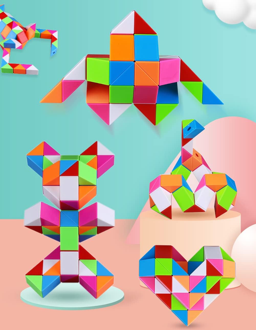 Fidget Magic Snake Cube Puzzles Twist Ruler Speed Cubes Brain Teaser Game Toys for Kids (72 Block 1PACK)