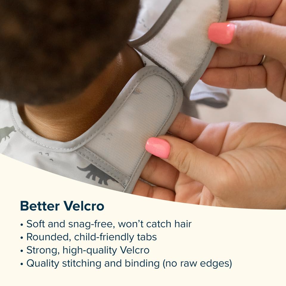 - EASY TO USE: Designed for baby-led weaning chaos, our waterproof baby bibs (6-24 months) feature a no-scratch closure that stays put during tugging but is also easy to remove. The 100% recycled polyester fabric wipes clean in seconds. New parents obsessed with baby feeding essentials love how these toddler-proof baby bibs transform messy high chair meals into stress-free bonding time. Perfect for baby bibs or toddler bibs.