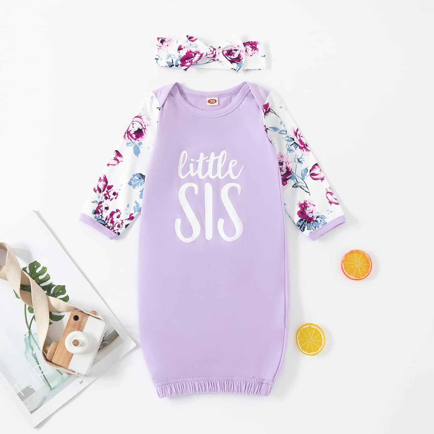 - Cute baby nightgown: "Little Sister" letter print, vintage floral long sleeve design, matching bowknot headband, super fashionable 2pcs baby sleep gown baby pajamas in spring summer fall winter.