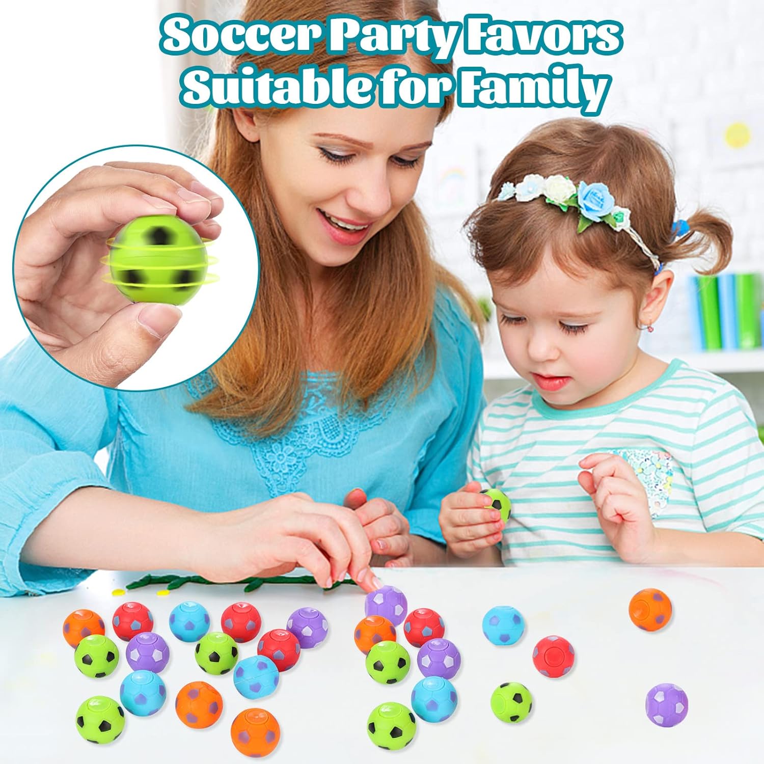 - Novel Design and Easy to Play - Each mini soccer is 1.3 inches in size, lightweight and portable, and can be held with one hand. Just press the center of these soccer fidget spinner with two fingers and play with the other finger. Kids can take it with them or put it in pockets and take it out to play. These are very perfect sports party favors for Christmas goodie bag stuffers, and it is very suitable for birthday party as gifts, and can also be used as classroom prizes!