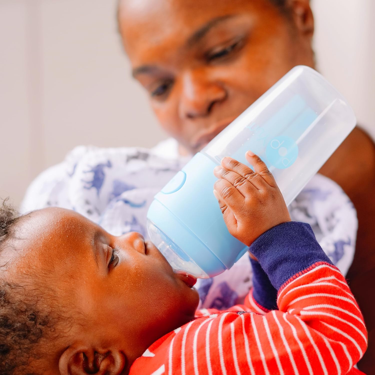 PopYum 9 oz Blue Anti-Colic Formula Making/Mixing/Dispenser Baby Bottles, 3-Pack with #2 Medium Flow Nipples, 260 ml, BPA-Free, Natural Latch