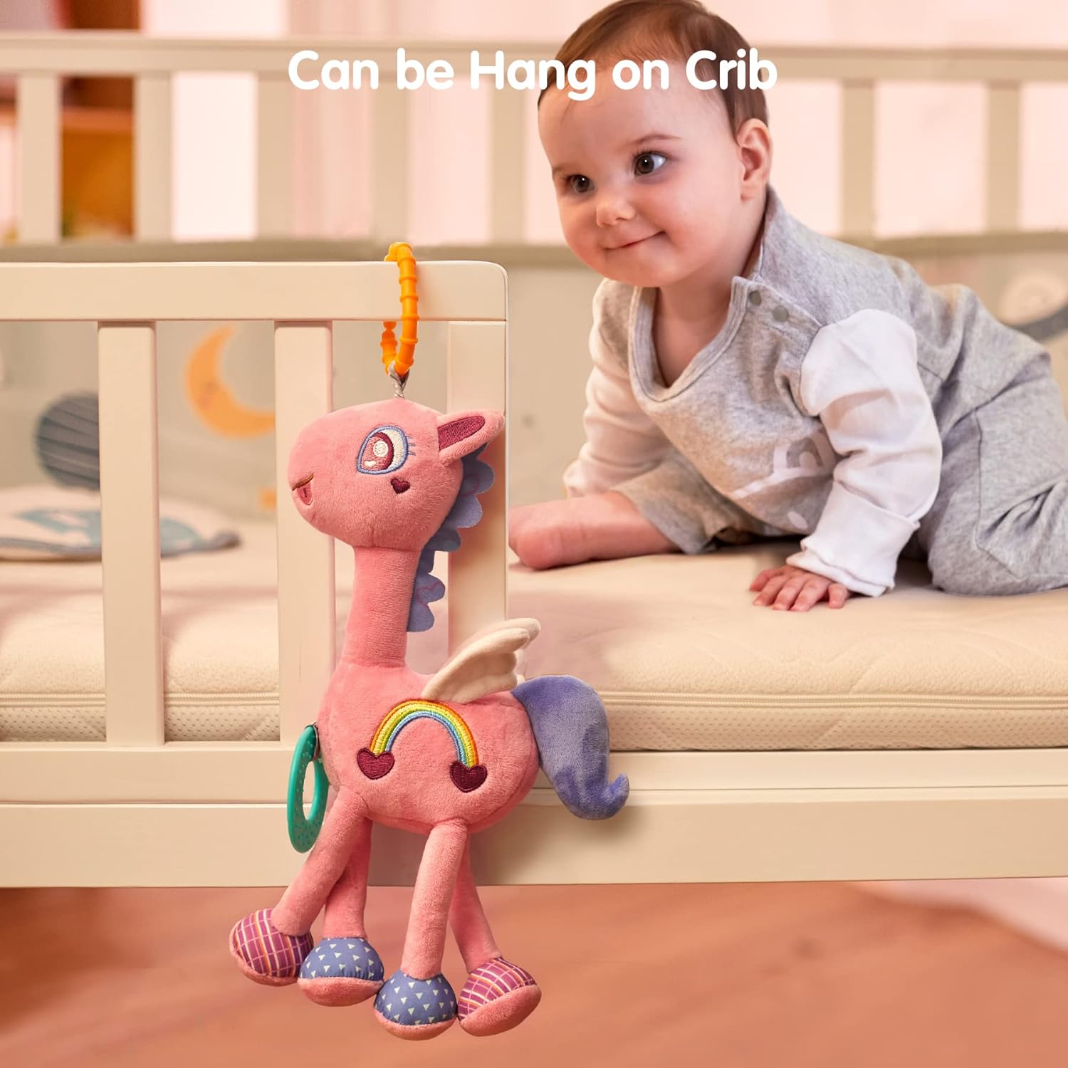 TUMAMA Baby Plush Hanging Rattle Toys, Crib Car Seat Travel Stroller Playmat Soft Plush Toy with Wind Chimes, Best Birthday Gift for Newborn 0-12 Months