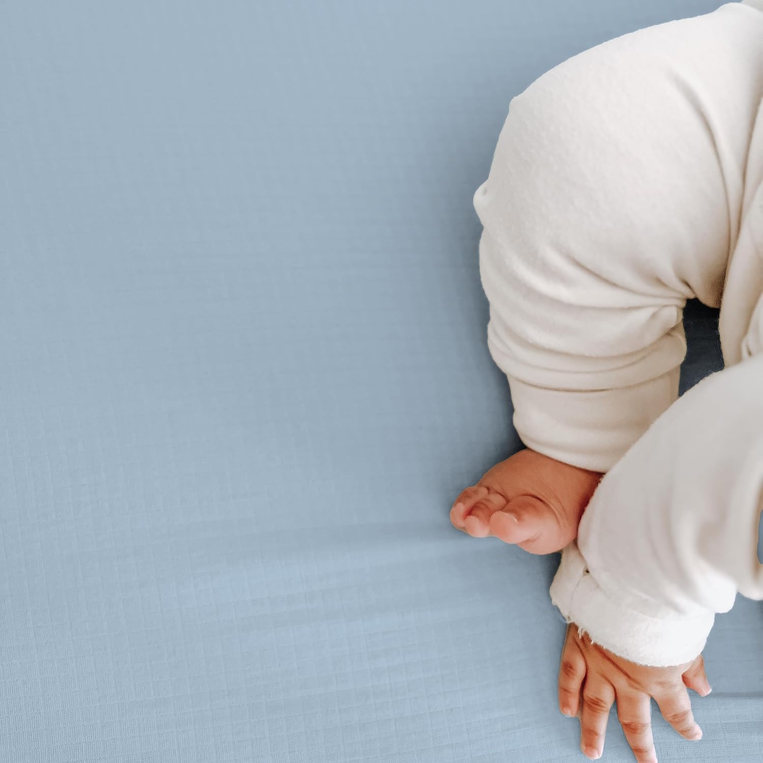 Newton Baby Mini Crib Sheets (2-Pack) | Organic Muslin Cotton, Ultra Breathable & Soft Baby Sheets, Machine Washable Baby Mattress Sheets, Fits Any Mini Sized Crib 24" x 38", Sky Blue