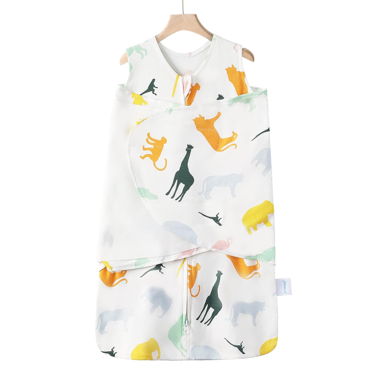 Swaddle-Blanket Baby Girl & Boy Swaddles Newborn Infant Transition 100% Cotton Wrap Blankets, 3-Way Adjustable Wearable Blanket, TOG 1.0 (Colorful Zoo, 3-6 Month)