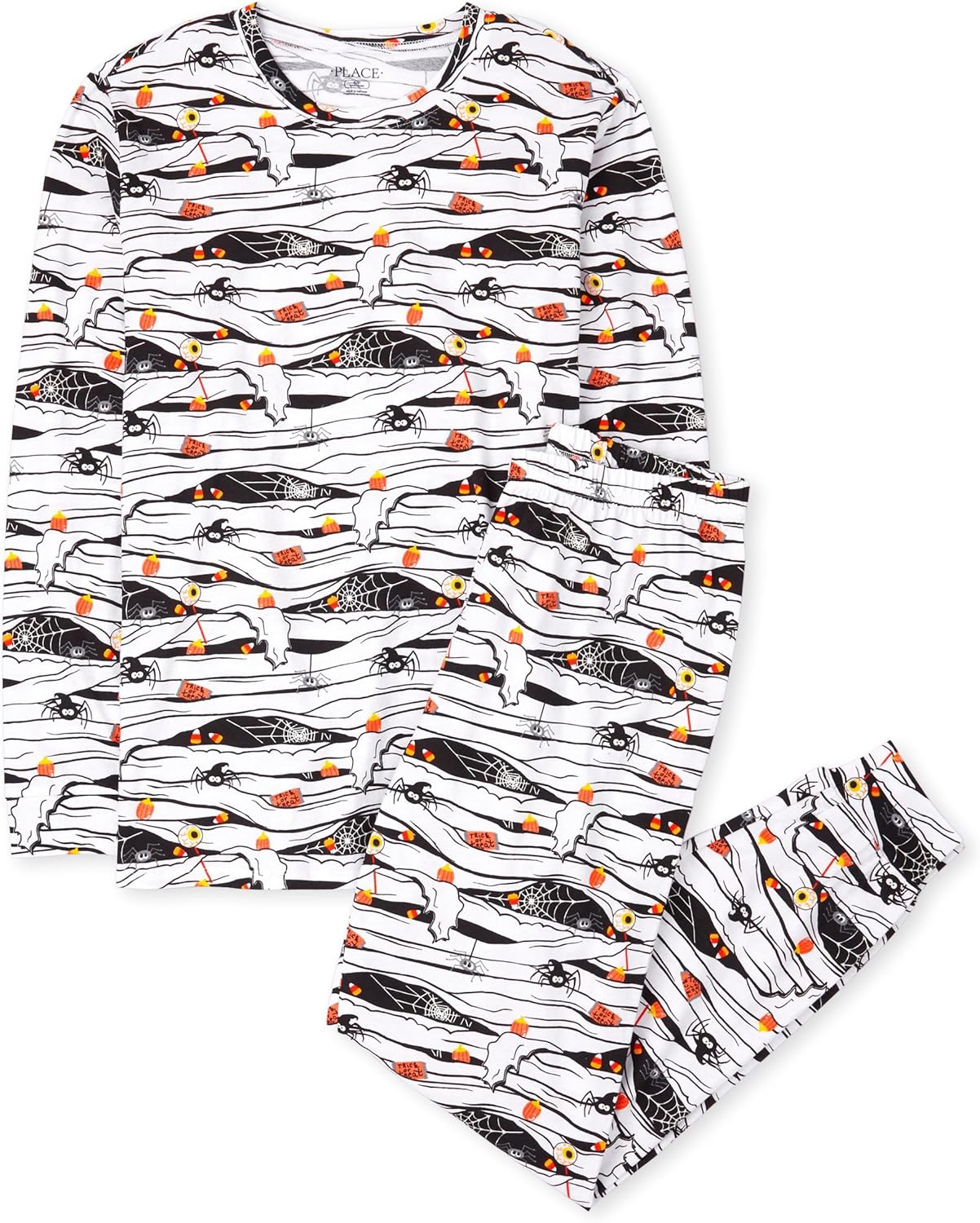 - PAJAMA TOP — Features long sleeves, rib-knit crew neck, banded sleeve cuffs and allover glow-in-the-dark mummy and candy print. For best glow effect, expose to light before wearing.