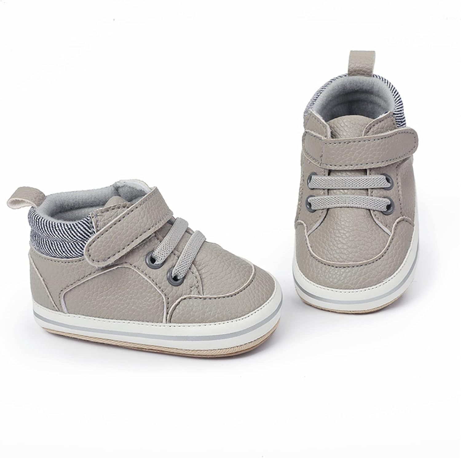 SOFMUO Baby Boys Girls High Top Ankle PU Leather Sneakers Soft Rubber Sole Infant Moccasins Newborn Oxford Loafers Anti-Slip Toddler Wedding Uniform Dress Shoes