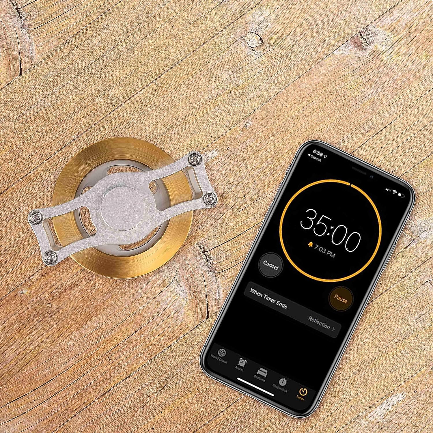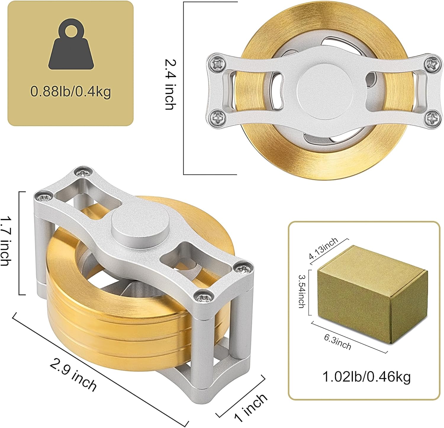 - 【EXQUISITE BRASS KINETIC SPINNER】Crafted through CNC machining with a copper rotor and aluminum stand. This mesmerizing fidget spinner boasts an engraved spiral pattern, creating a 360° optical illusion effect when spinning.