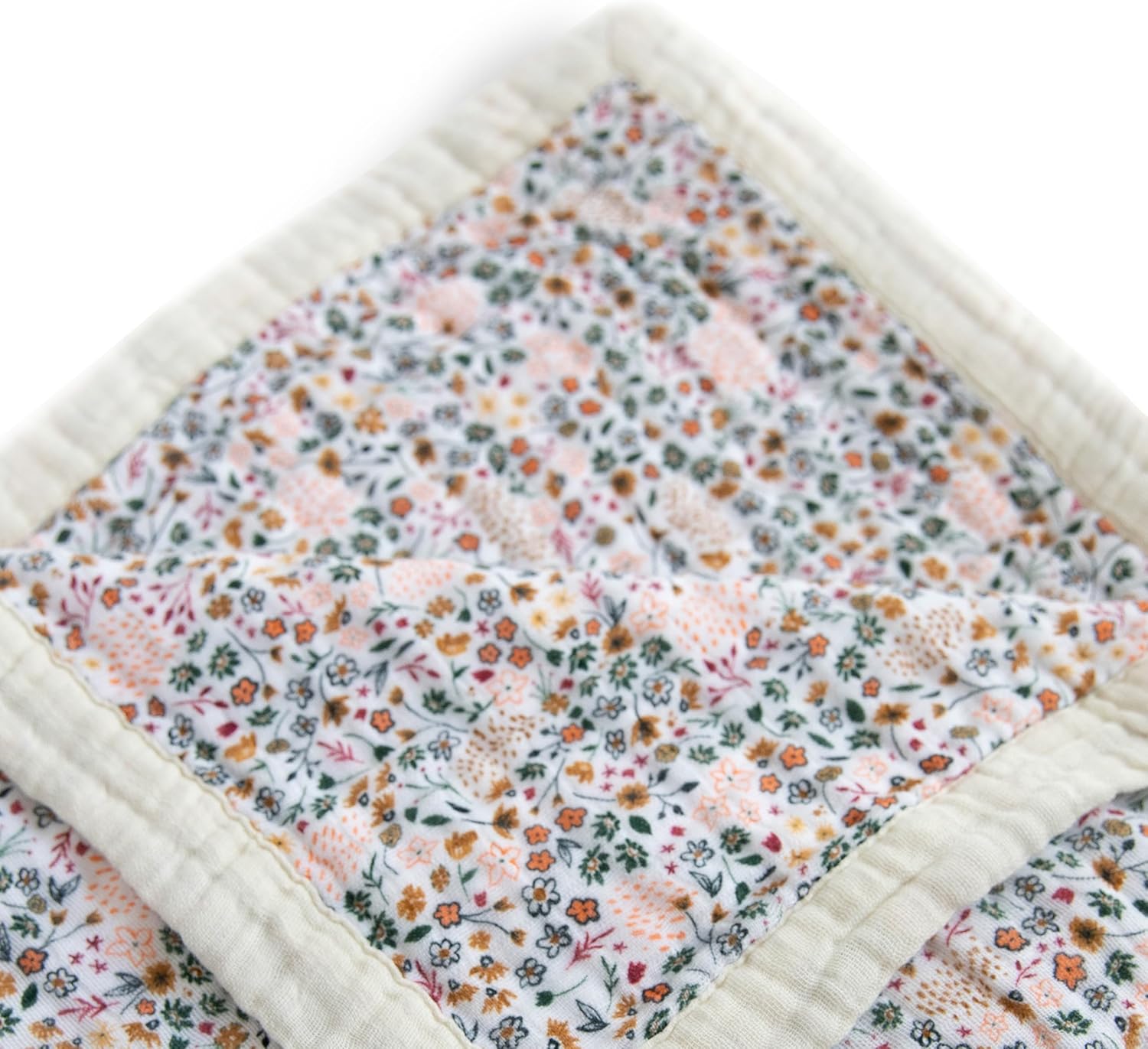 Little Unicorn Premium Quilted Throw | Super Soft, Multi-Layered Muslin XL Blanket| Great for Kids & Families (Pressed Petals)