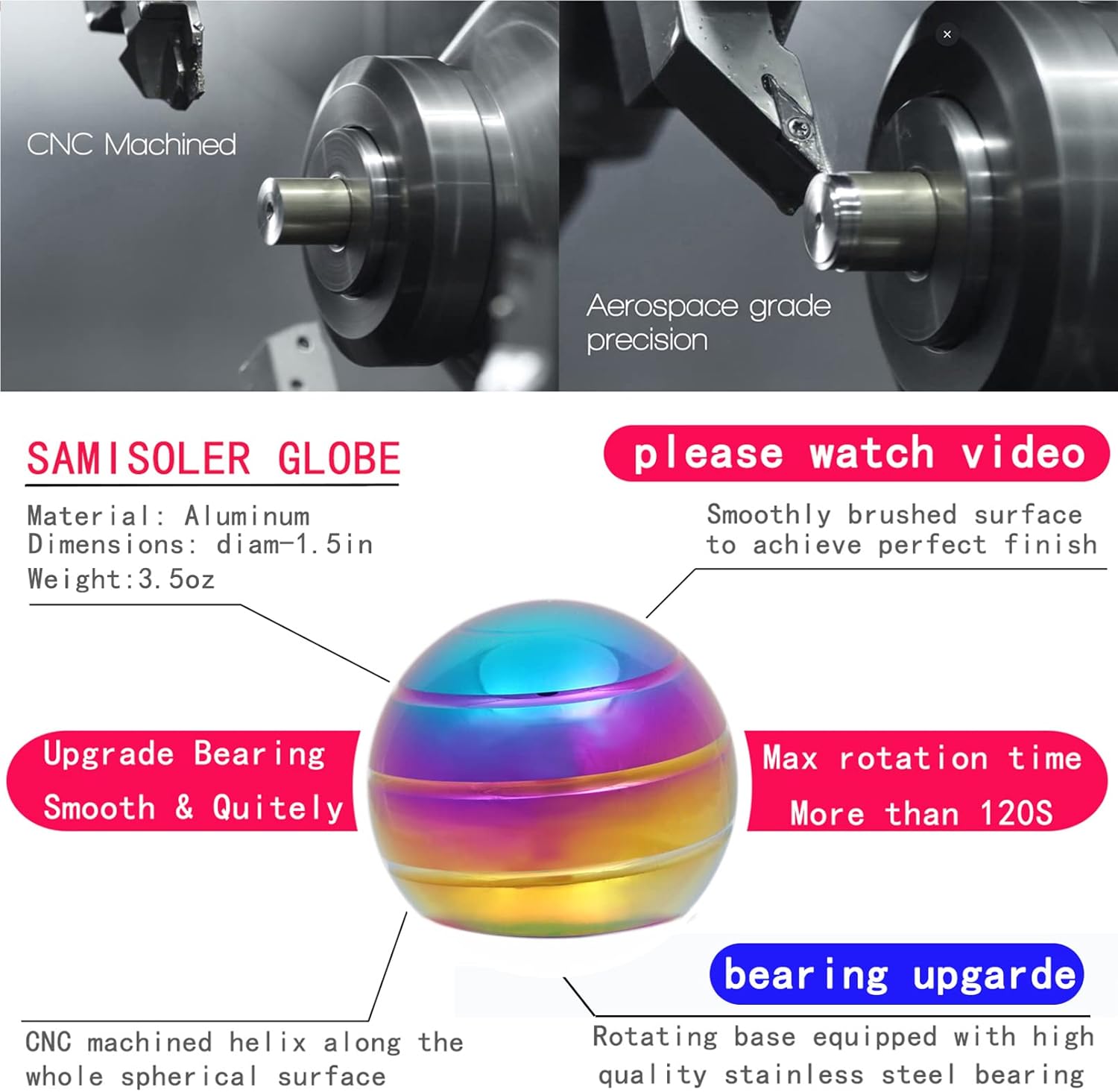 - 【Please watch video】1.5" Size fidget-toys, Aluminum metal and machined by CNC. High-quality made.Spinning Up 180 Seconds.