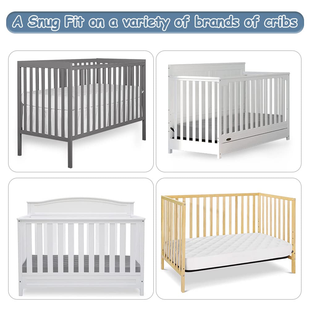 - FLEXIBLE FIT - Measures 52''x28'', the crib mattress protector is designed specifically to fit USA standard crib. Deep pockets make sure the crib mattress pad universal fit mattress up to 6 inch thick. Featuring a fully elastic skirt, it helps prevent sliding and shifting for added security.