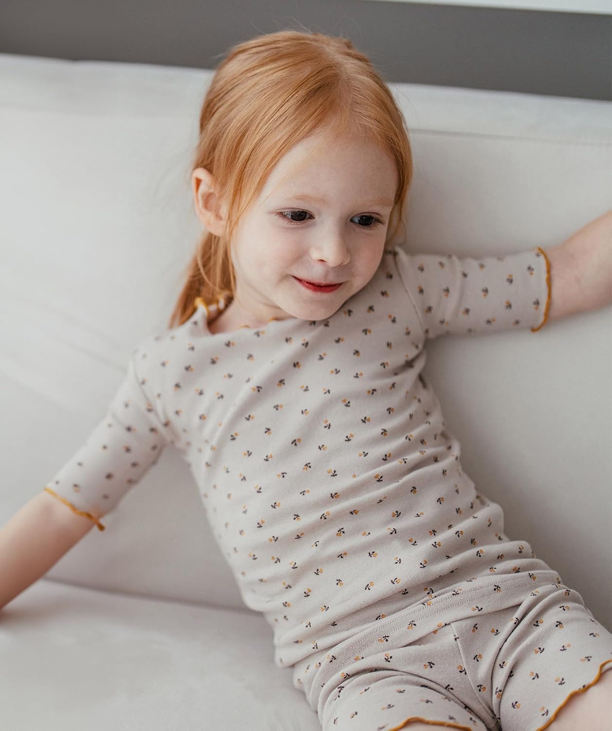 AVAUMA Baby Boy Girl Pajama Set 6M-7T Kids Cute Toddler Snug fit Flower Pattern Design Pjs Cotton Sleepwear Ruffled Shirring