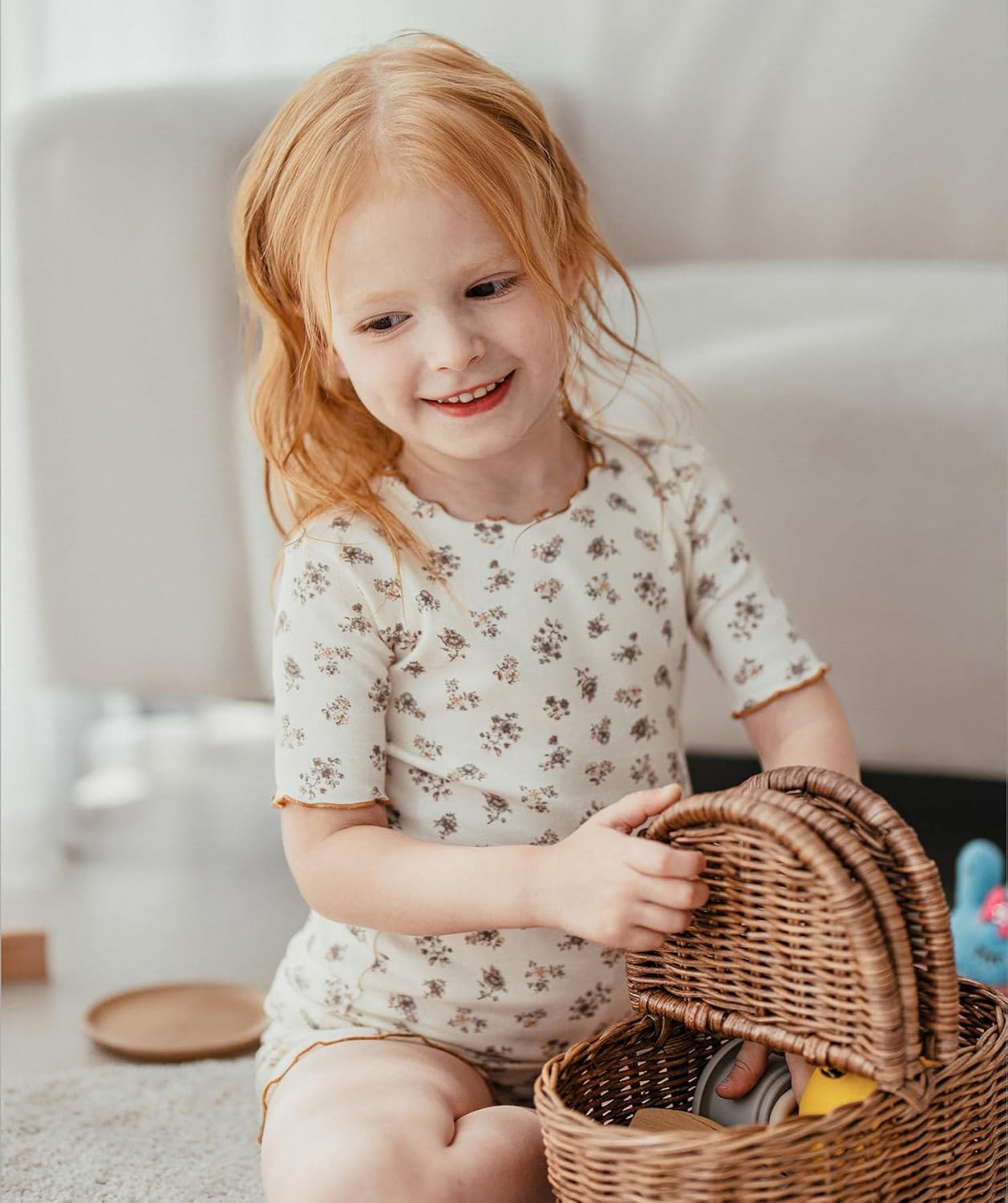 AVAUMA Baby Boy Girl Pajama Set 6M-7T Kids Cute Toddler Snug fit Flower Pattern Design Pjs Cotton Sleepwear Ruffled Shirring