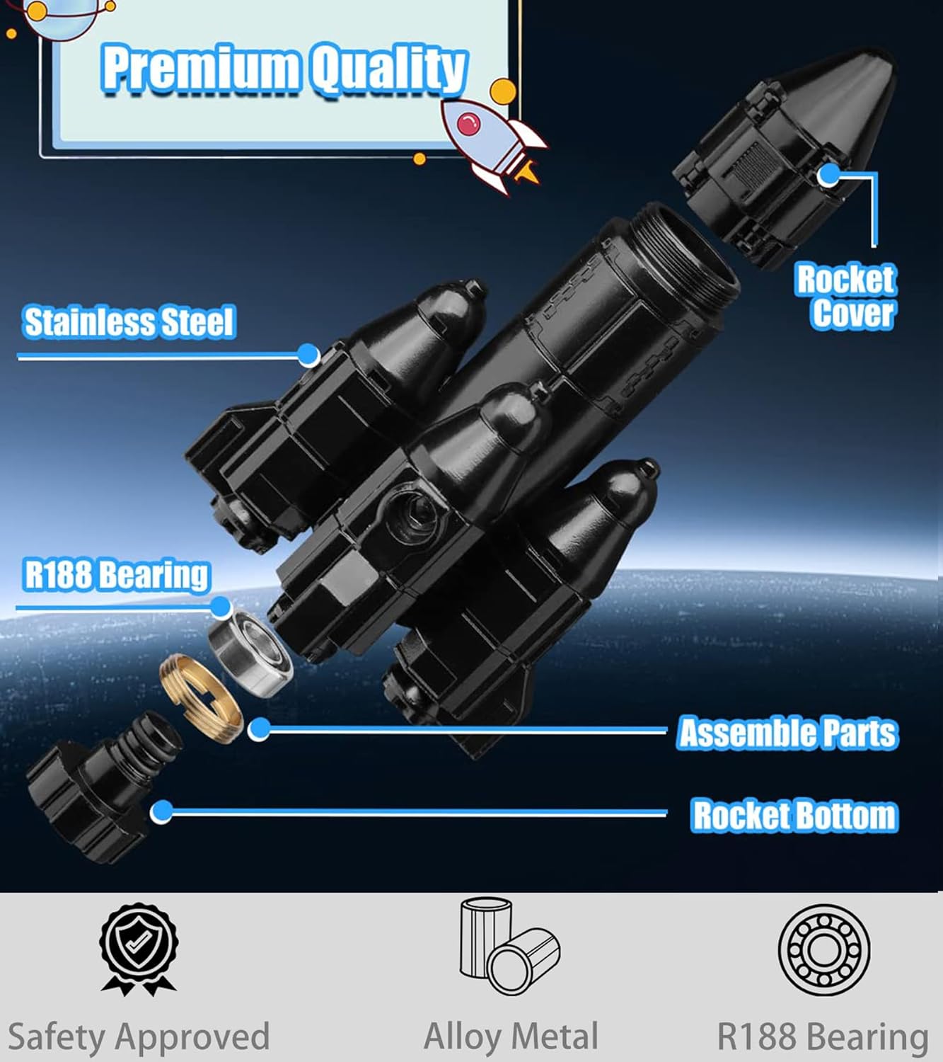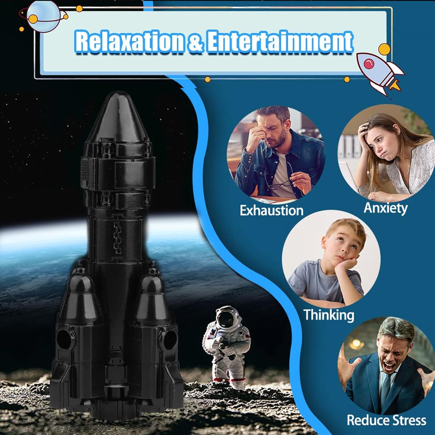 - Silent Stress Relief Toy: The Amarlozn Rocket Spinner provides soothing stress relief without causing distractions. Unlike spinners, it operates silently, allowing you to fidget and play without drawing attention, especially in the classroom.