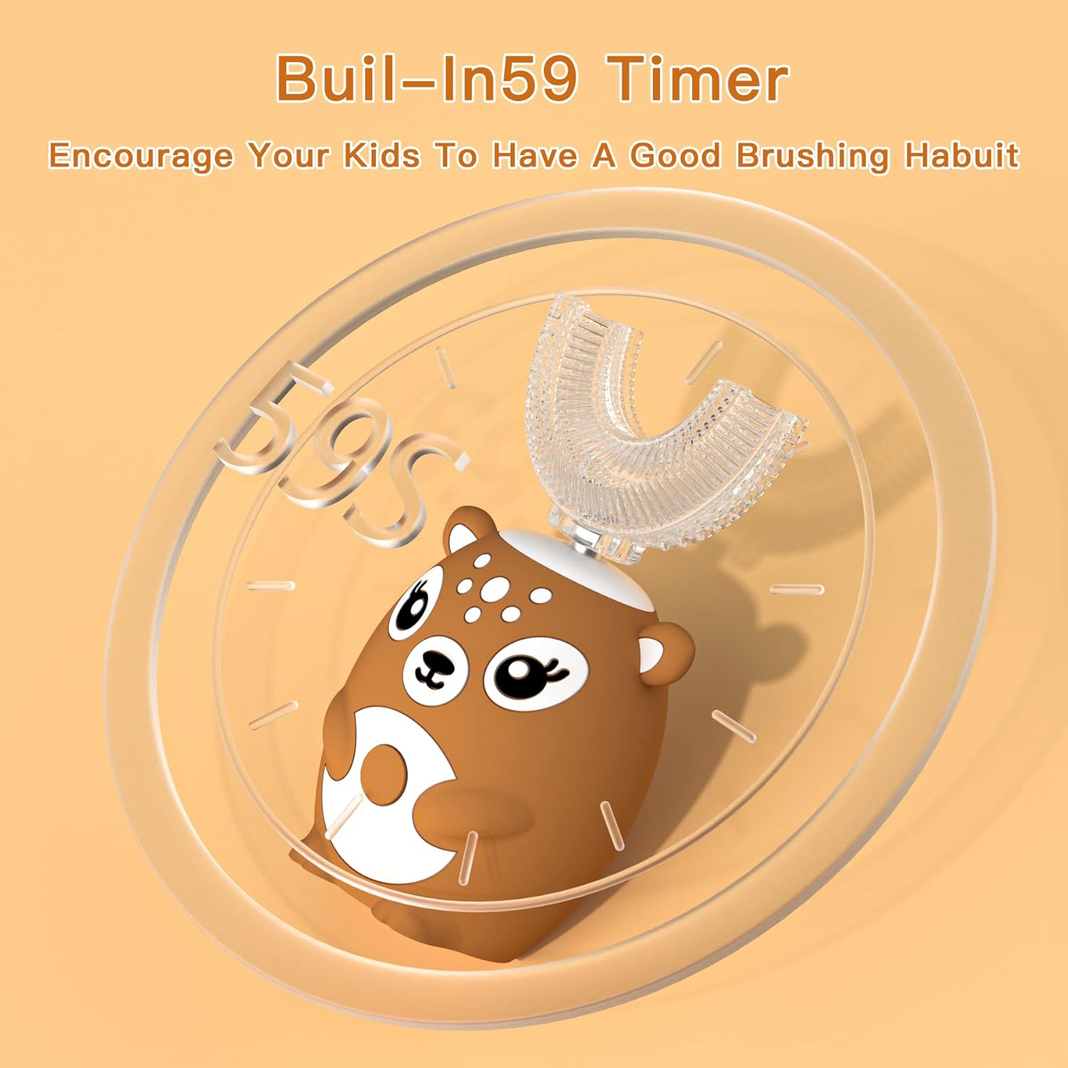 - WHAT YOU GET : Kids electric toothbrush body, 2 U-shape brush head, 2 soft brush heads, USB cable, Dustproof Gargle cup(toothbrush cover), User manual