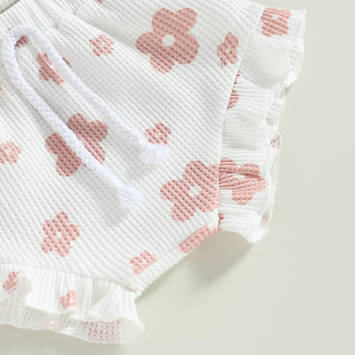 fhutpw Baby Girl Clothes Summer Cute Outfits 3 6 12 18 Months Spaghetti Strap Romper & Floarl Shorts Sets