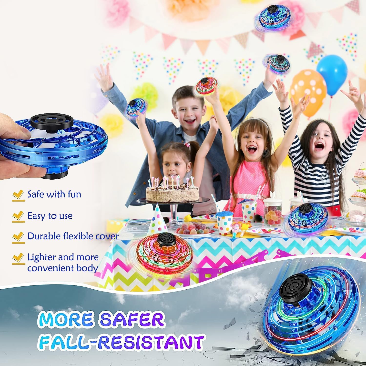 - Sensor Technology & 360° Rotating Flight - The customized smart sensors inside the hover drone can control the flying ufo and make it work better. The built-in unique propeller can control the precision to provide excellent balance support for the ufo magic spinner dart. Keeps the drone flying with 360° smooth rotation. Built-in RGB flashing light adds to the fun of flying at night.