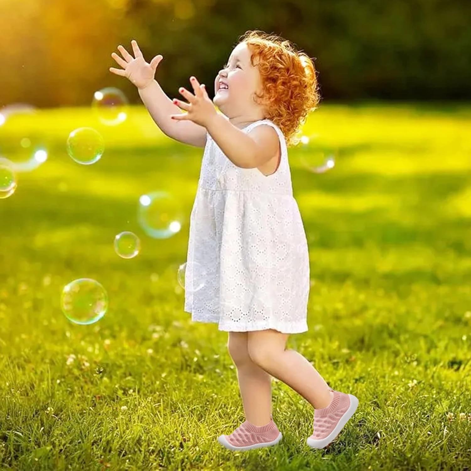 - None-slip:Lightweight sole are made of natural rubber which is flexible and bendable.The concave and convex pattern of the soft sole has good antiskid performance which helps kids get grip and balancewhen when learning to walk.
