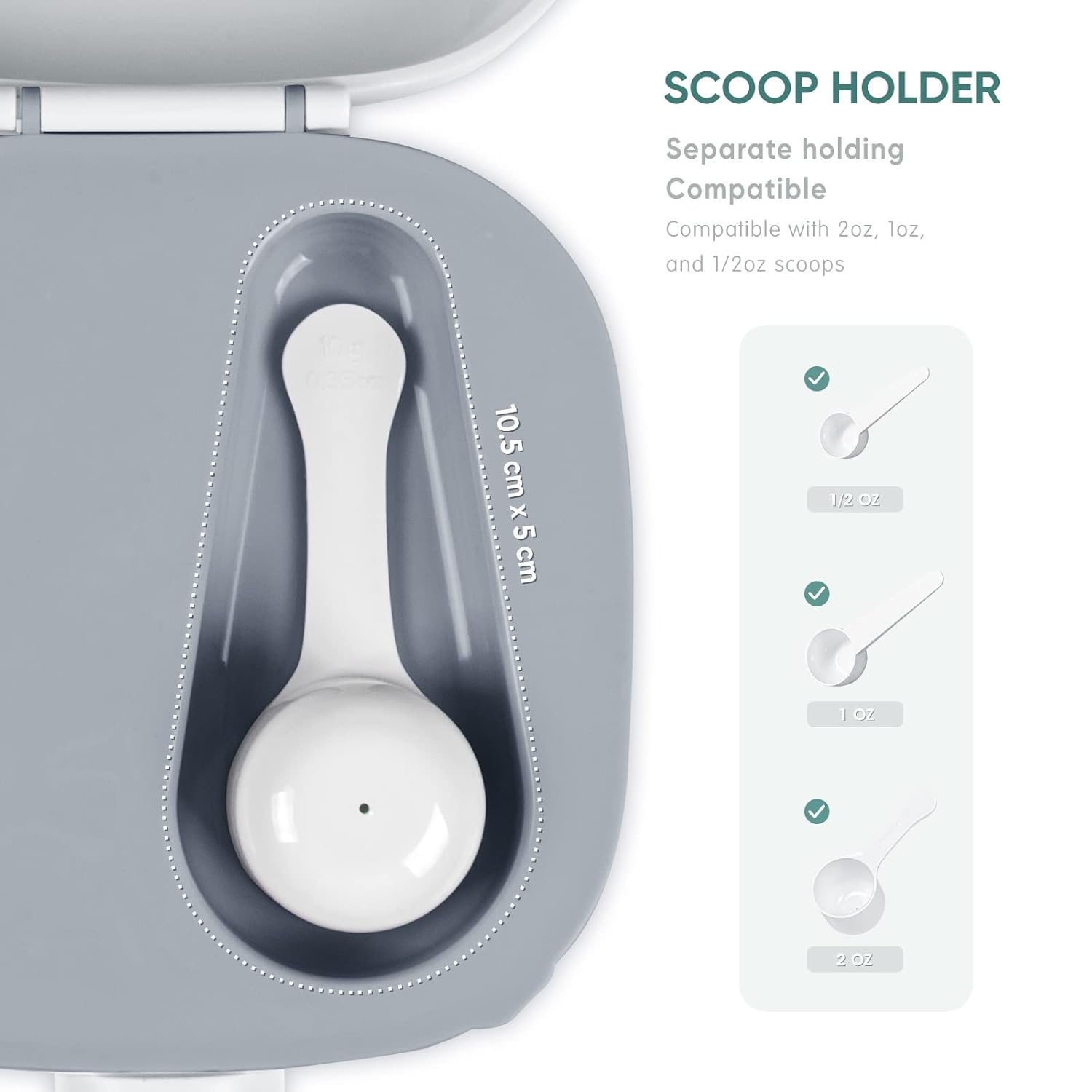 • FORMULA DISPENSING SCOOPS - Our designer specially sized this dispensing scoop 2 ounces, easily make 2oz of milk, this scoop is the same size as most major baby formula brands. The handles easy to grip, it helps you make the baby milk quickly and easily. and our container has a separator layer design to hold the scoop separately. If you have a special sized scoop, don't be worried, we designed this holding area loose enough to compatible with most other different sized scoops.
