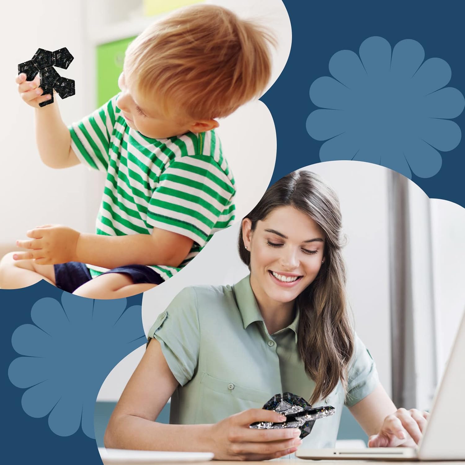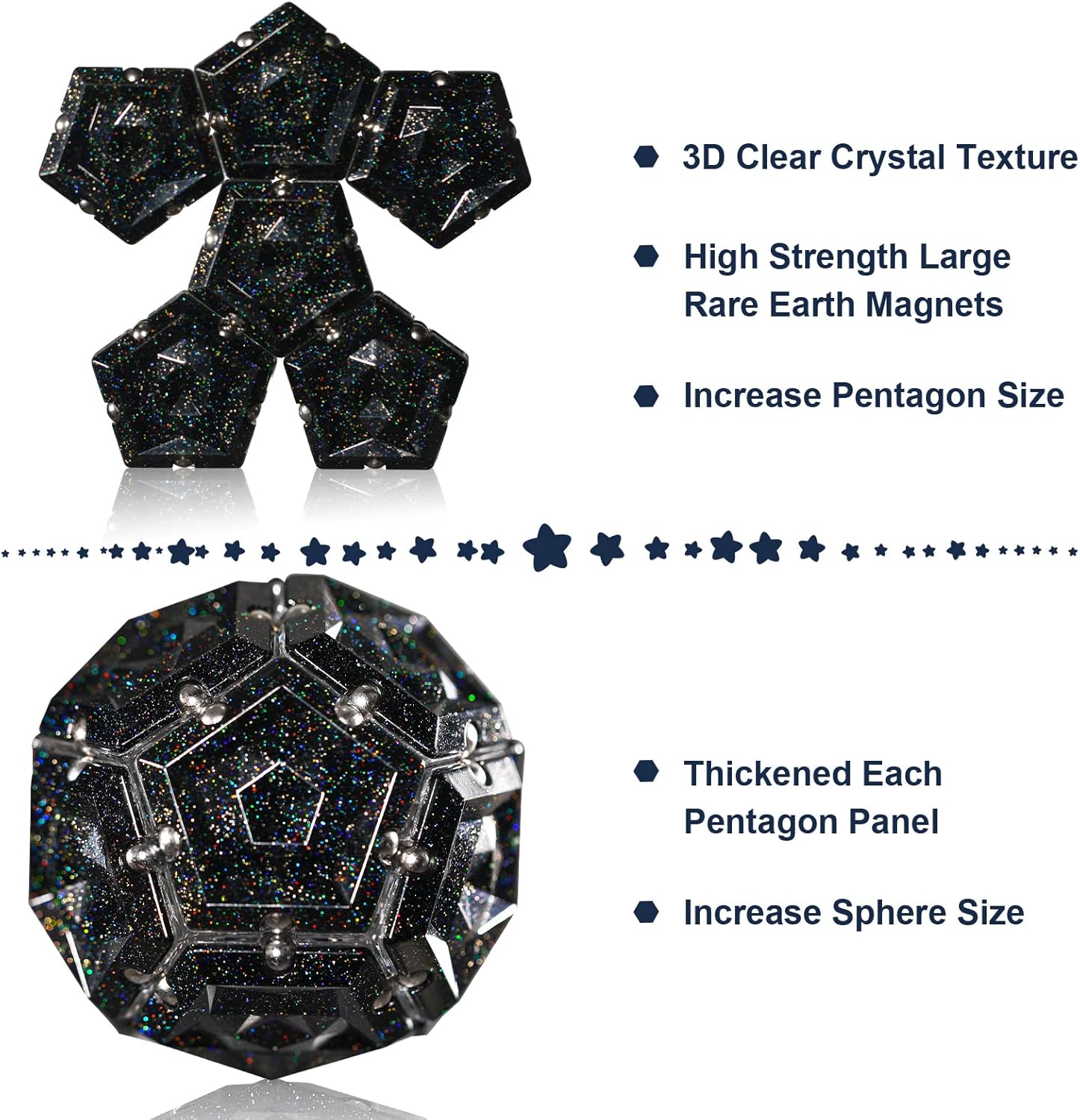 - [Holographic Glitter Panel]: Each pentagonal panel has stunning crystals and iridescent glitter, which emits dazzling iridescent when exposed to direct sunlight or lamplight. Each surface is cut into convex and concave shapes to better trigger nerve endings in fingertips and boost IQ.