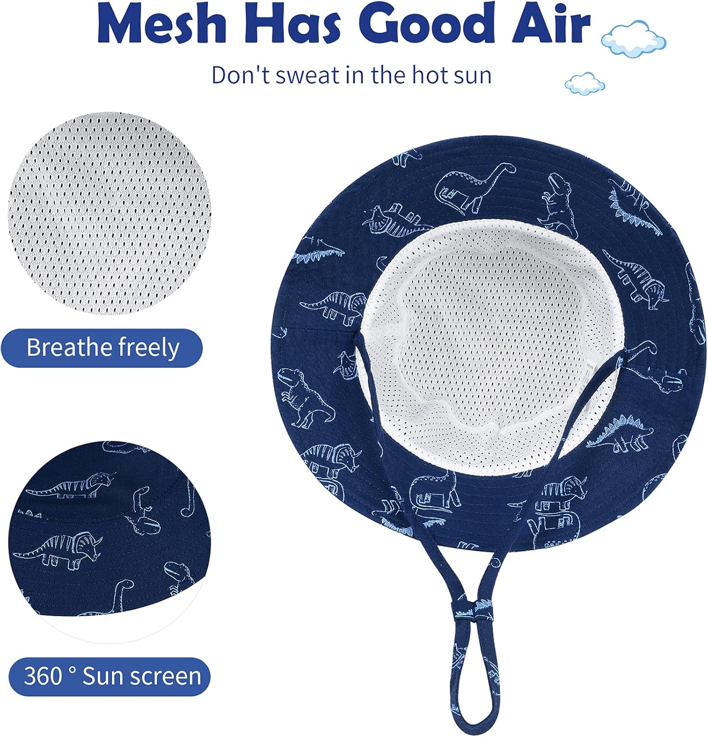 - 【Bucket Design】Baby hats with wide brim protects & shields kids eyes from the sun, adjustable chin strap, not strangling the neck to protect the baby's skin;