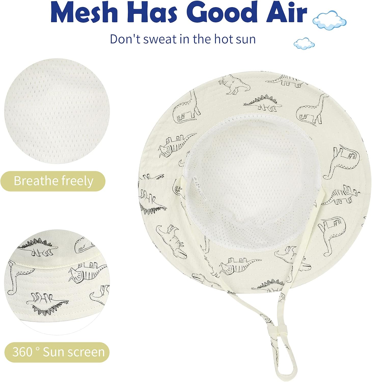 • 【Bucket Design】Baby hats with wide brim protects & shields kids eyes from the sun, adjustable chin strap, not strangling the neck to protect the baby's skin;