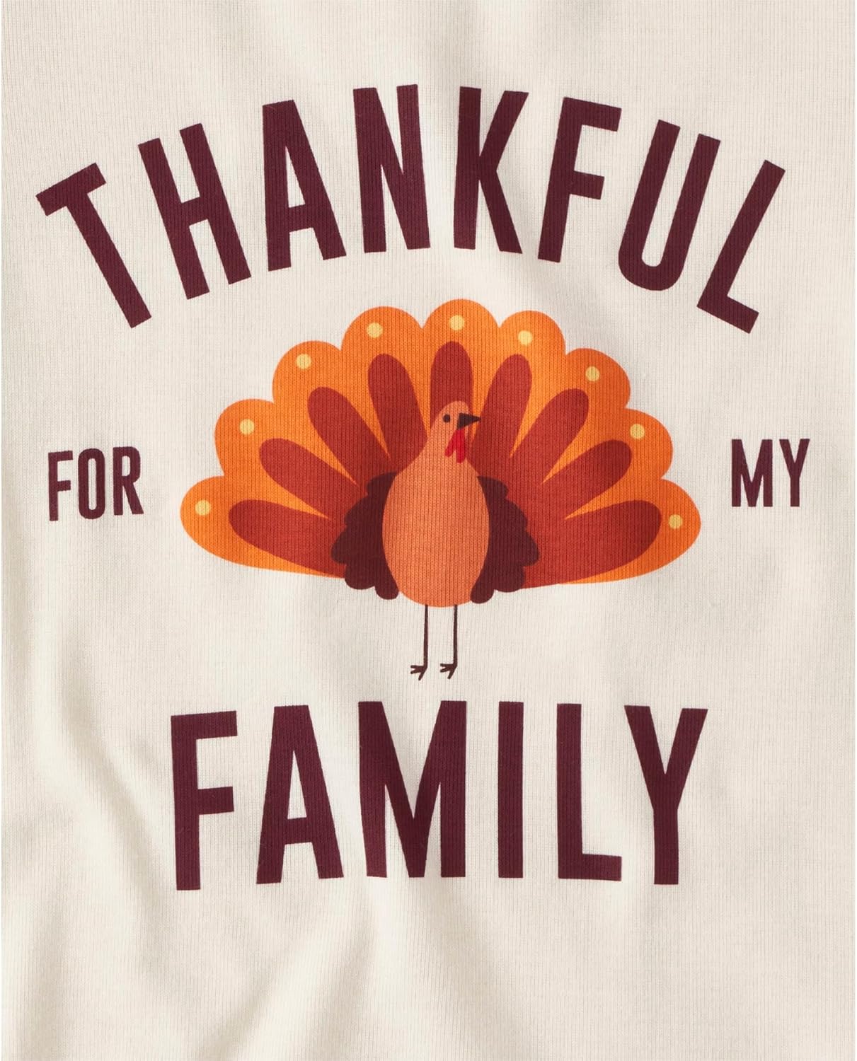 - PAJAMA TOP — Features long raglan sleeves, rib-knit crew neck and sleeve cuffs and 'Thankful For My Family' with turkey graphic design at front