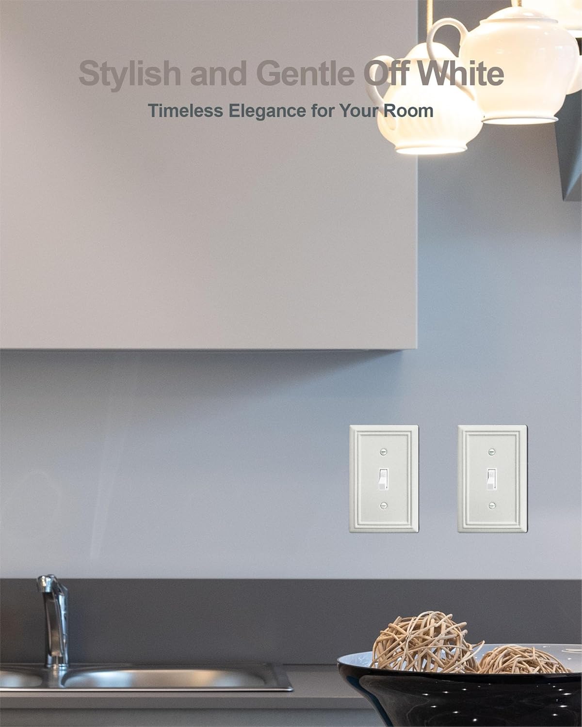 - [Simple Elegance] - Elevate your home decor with stylish off-white metal toggle wall plate, exuding sophisticated simplicity. The off-white wall plate cover features a warm, muted undertone that adds a cozy touch compared to a pure white