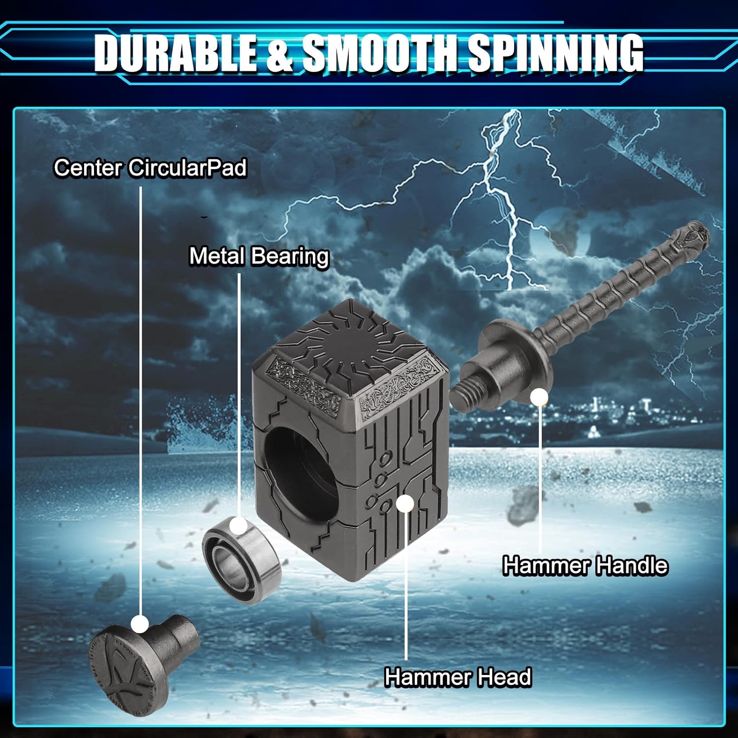 Mjolnir Fidget Spinner Cube Toy for Kids Adult, Hammer Figit Hand Spinner with Shield Finger Spinner Metal Block Transformable Gyro Fidget Keychain, Cool Gadget Bag Filler Gift 2 Pack
