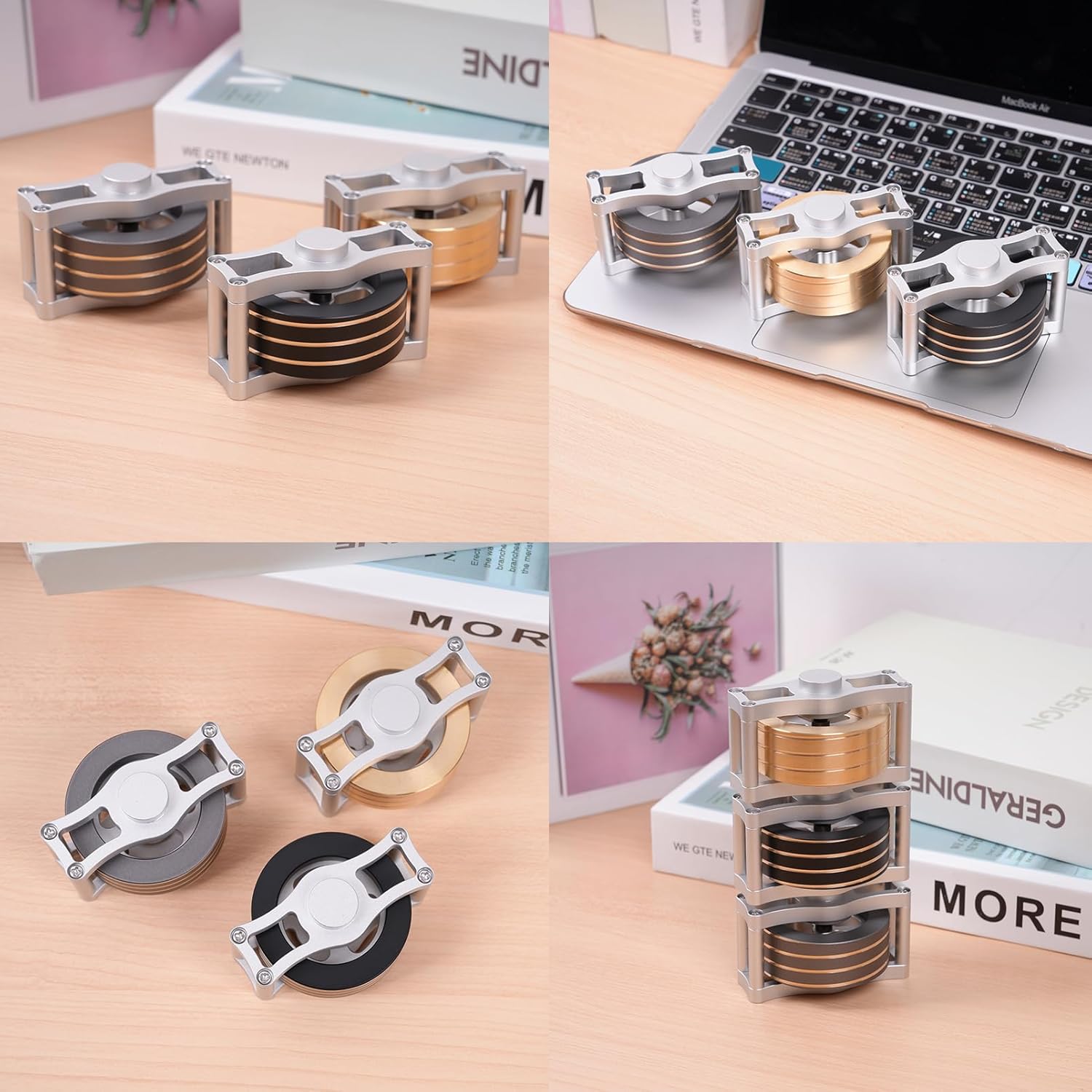 • Metal Kinetic-Desk-Toys: Precision CNC-manufactured with a brass rotor and aluminum frame, making it a unique and eye-catching addition to any flat surface such as a desk.