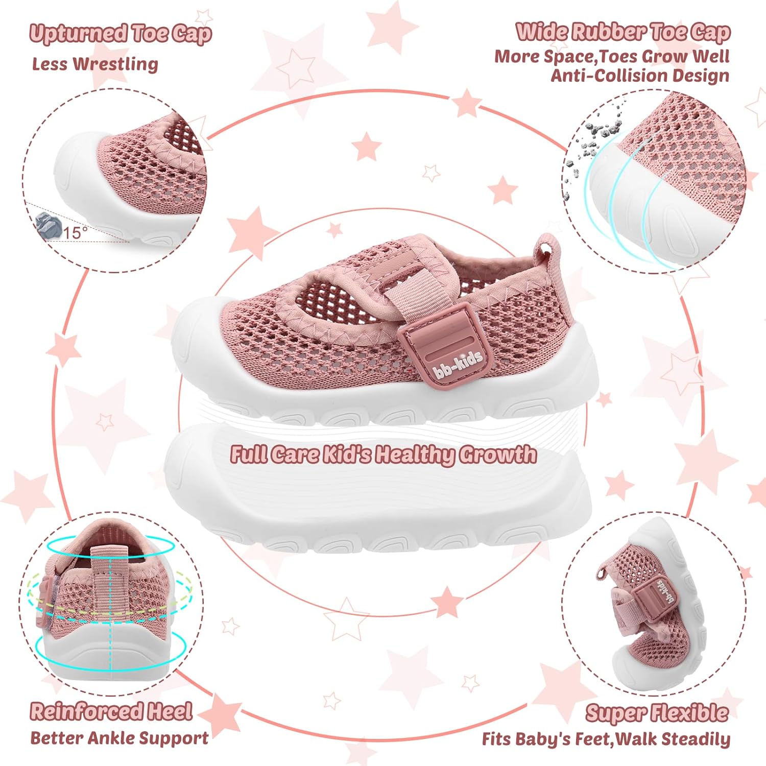 • Breathable Upper: The toddler walking shoes feature a breathable mesh upper that quickly absorbs sweat. Cut-outs enhance the breathability of the baby shoe, ensuring your baby stays fresh all day. Easy to clean and machine washable, making them convenient for busy parents.