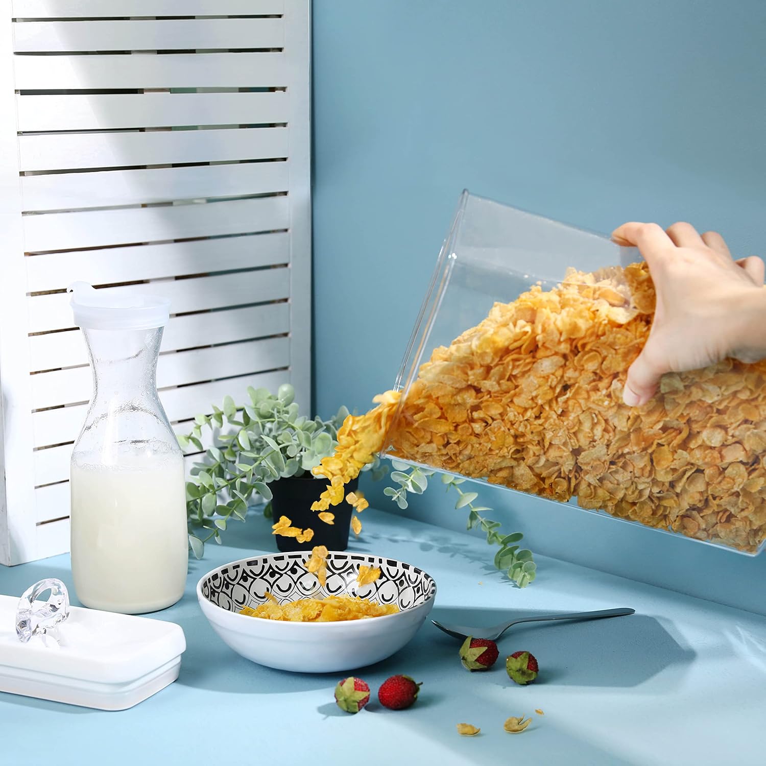 - EASY GRIP & MESS-FREE POURING: Designed for small hands, these 4 x 8 inch RECTANGULAR sized containers offer a comfortable grip, making them perfect for children. The smooth, angled pouring corner ensures controlled, spill-free dispensing, encouraging kids to learn self-serving with confidence.