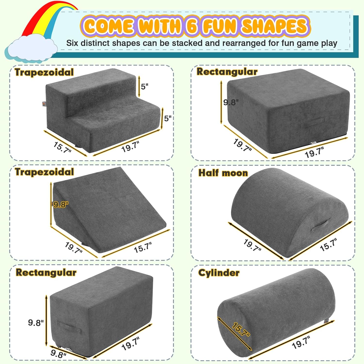 jela Foam Blocks 6Pcs Soft Play Equipment Luxury Miss Fabric, Toddler Climbing Toys Indoor Soft Play Climbing for Toddlers, Lightweight Climbing Blocks for Babies, Kids, Climb and Crawl Foam Playset
