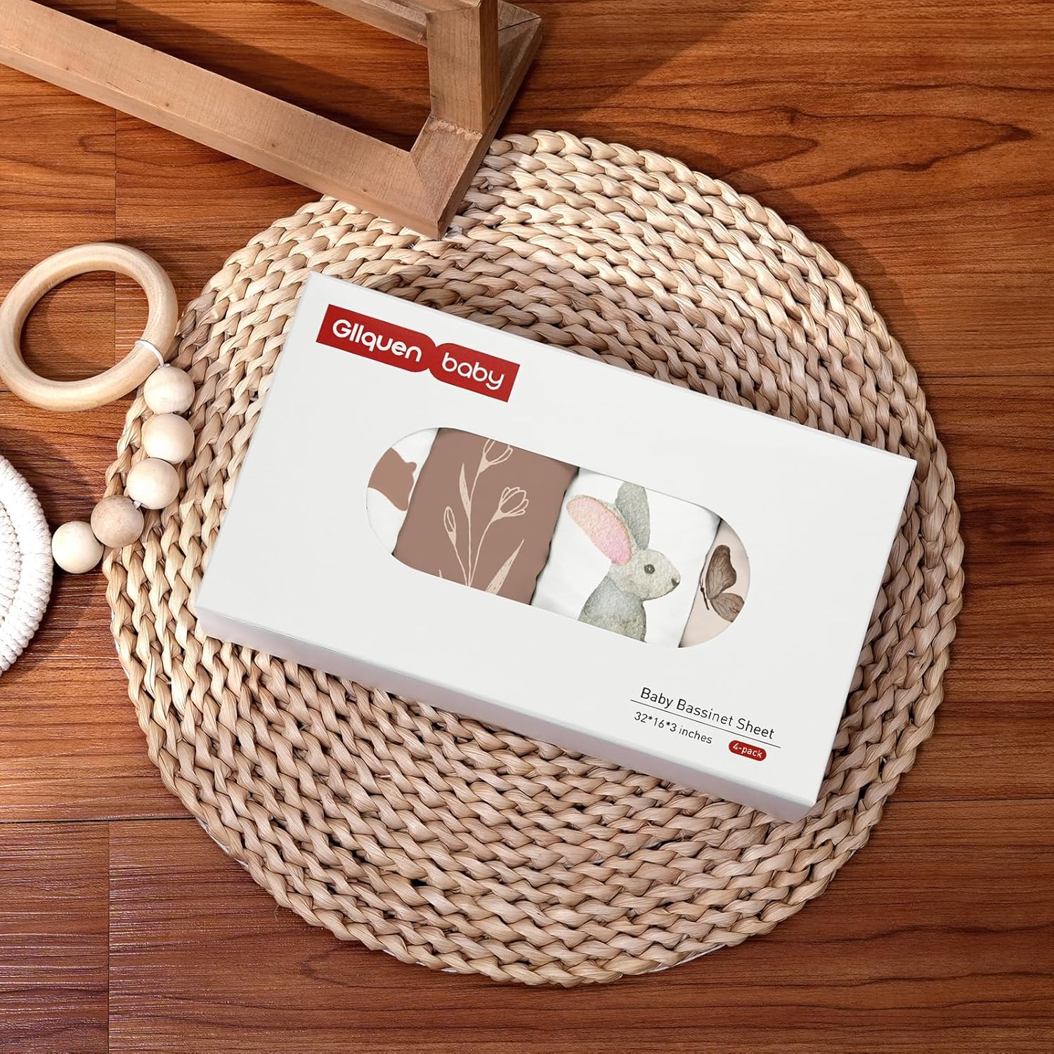 - SUPER SOFT FABRIC: Our baby bedding bassinet sheets are made of soft and breathable fabric that best fits the standard bassinet crib. The elastic band surrounds the mattress, so mothers will not worry that it will slip away, creating a comfortable and stable sleeping space for the baby. Rest assured, every product meets the OEKO-TEX Standard 100 and is safe for babies