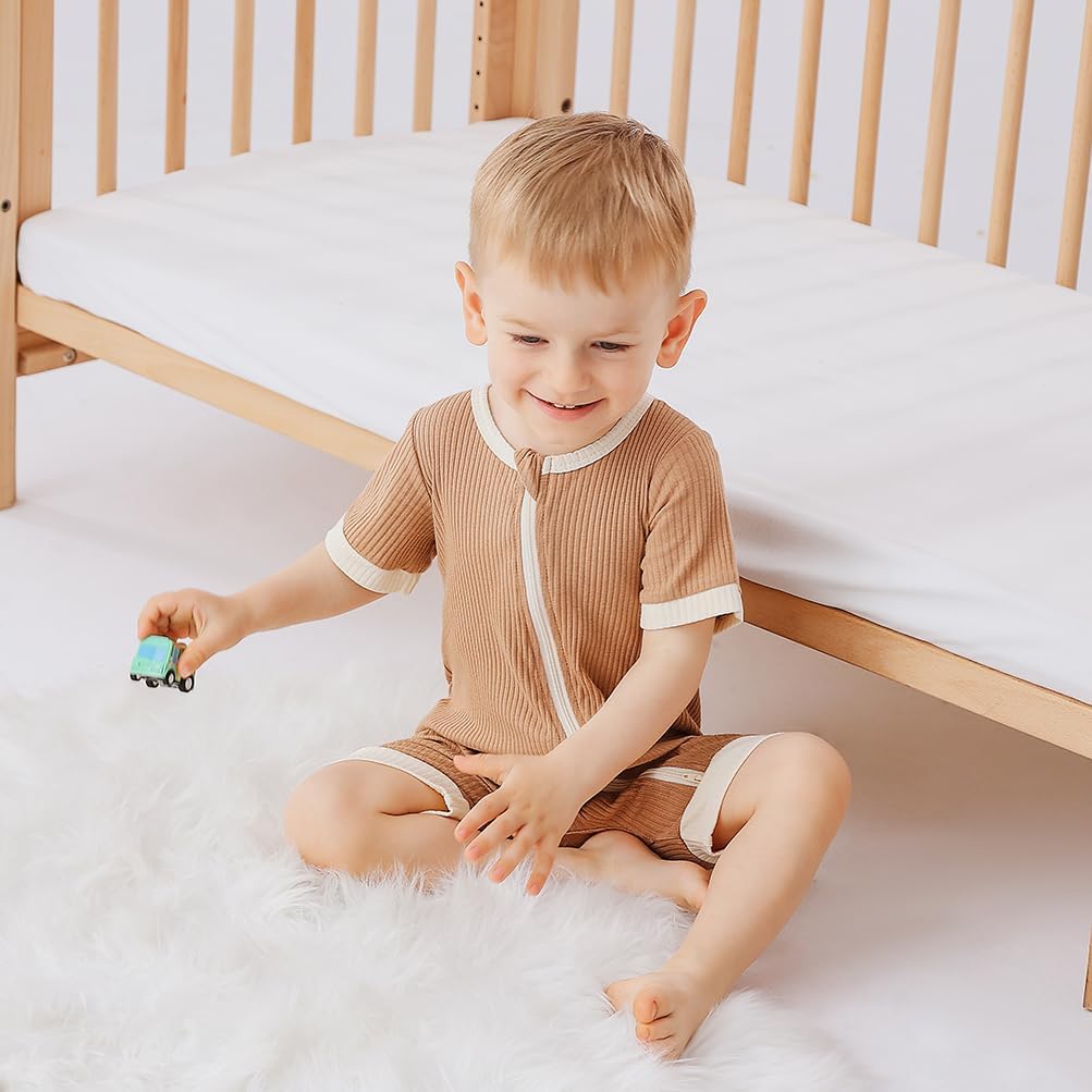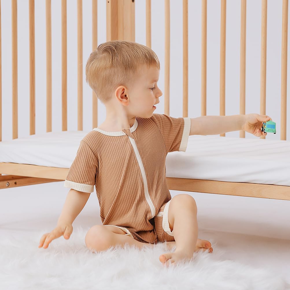 Bafeicao Unisex Baby Boy Girl 2 Pack Rompers Short Sleeve 2 Way Zipper One Piece Jumpsuits Clothes Sets