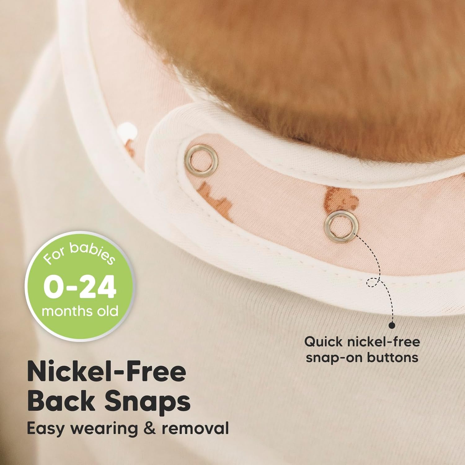 - 3 Adjustable Sizes With Soft Seams - With 2 sets of nickel-free snaps, you can adjust the girl and boy bibs according to your baby’s neckline. The soft-wrapped seams provide extra comfort for your baby while having the baby cloth bibs on.