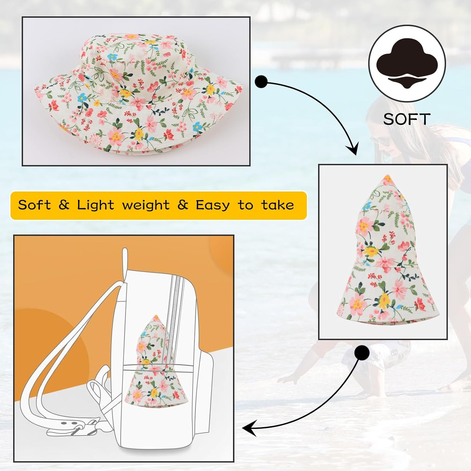 - NICE GIFT: Our baby girl hats are suitable for kids aged 0-8 years old.Bucket hats for kids are must-have sun hat for summer outings,perfect for giving as a gift.When you traveling,camping,fishing,go outing,you will need it.